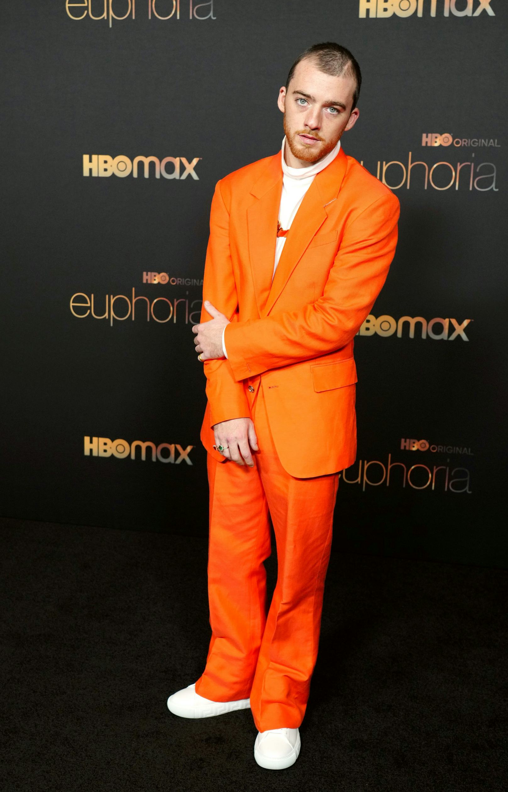 Angus Cloud, who wore a bright orange suit from the Versace spring/summer 2022 ready-to-wear collection.