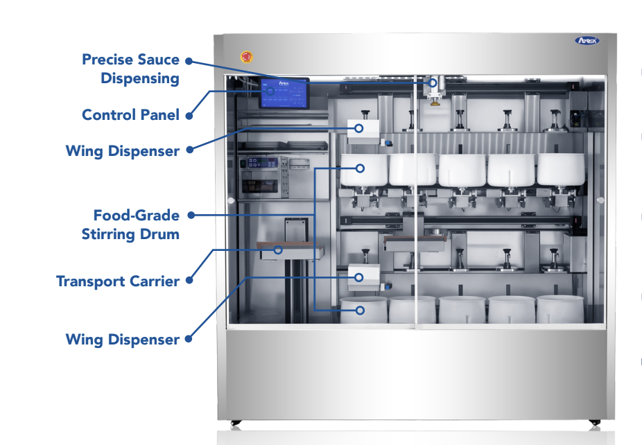 As the name implies, this solution is to upgrade a restaurant’s sauce-making capabilities. The Sauce Wing Master makes handling sauces easy. It can mix sauces automatically and dispense the exact amount you need, so nothing goes to waste. Its food-safe drums can spin or tilt to mix sauces evenly, every time. Leena says eating saucy food can be messy, but making it doesn’t have to be.